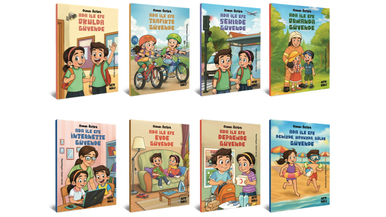 Ada ile Efe Güvende aslında tek bir kitap değil; çocukların günlük hayatta karşılaşabileceği farklı risk alanlarını adım adım ele alan bütünlüklü bir seri. Çünkü güvenlik tek bir mekâna ya da tek bir duruma sıkışmış bir mesele değil; çocuk neredeyse risk de orada.