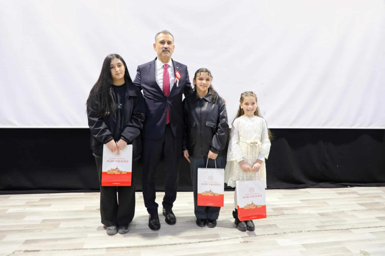 Ayrıca, Ağrı Valiliği himayesinde İl Milli Eğitim Müdürlüğü tarafından düzenlenen resim, şiir ve kompozisyon yarışmalarında dereceye giren öğrencilere ödülleri protokol üyeleri tarafından takdim edildi.