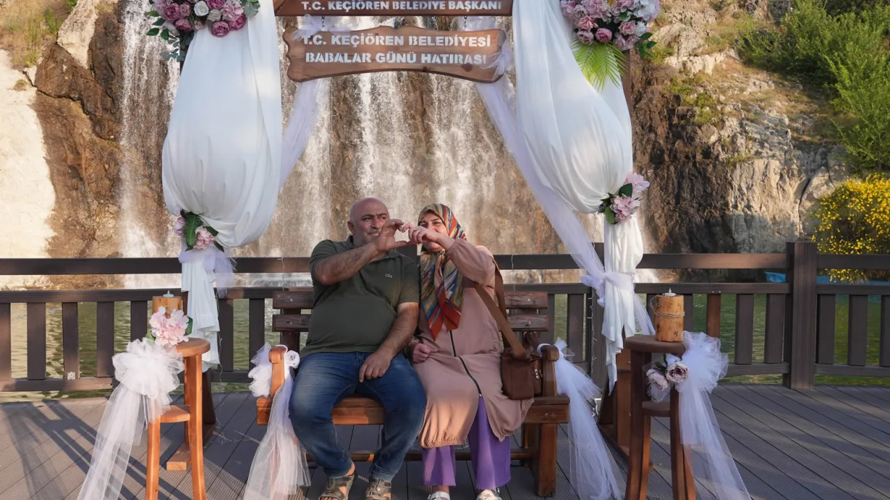 Ankara'da Keçiören Belediyesi tarafından Babalar Günü dolayısıyla Kartaltepe Kent Ormanı’na kurulan nostaljik Babalar Günü Hatıra Panosu, vatandaşlardan yoğun ilgi gördü.ANKARA (İGFA) -Doğal şelale manzarasına karşı konumlandırılan çiçek süslemeli ahşap pano, piknik yapan ailelerin uğrak noktası oldu.