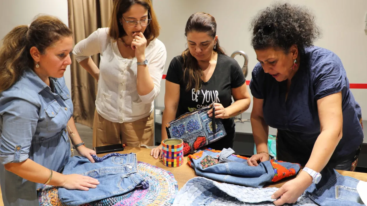 Atölye boyunca katılımcılar, kullanılmayan eski kot pantolon parçalarını değerlendirerek günlük yaşamda kullanılabilecek çantalar tasarladı. Eğitmenler eşliğinde gerçekleştirilen uygulamalı eğitimde, ileri dönüşümün hem çevreyi korumaya hem de aile ekonomisine katkı sağlayan yönleri detaylı biçimde anlatıldı. Katılımcılar, kendi elleriyle ürettikleri yeni ürünleri atölye sonunda teslim aldı.