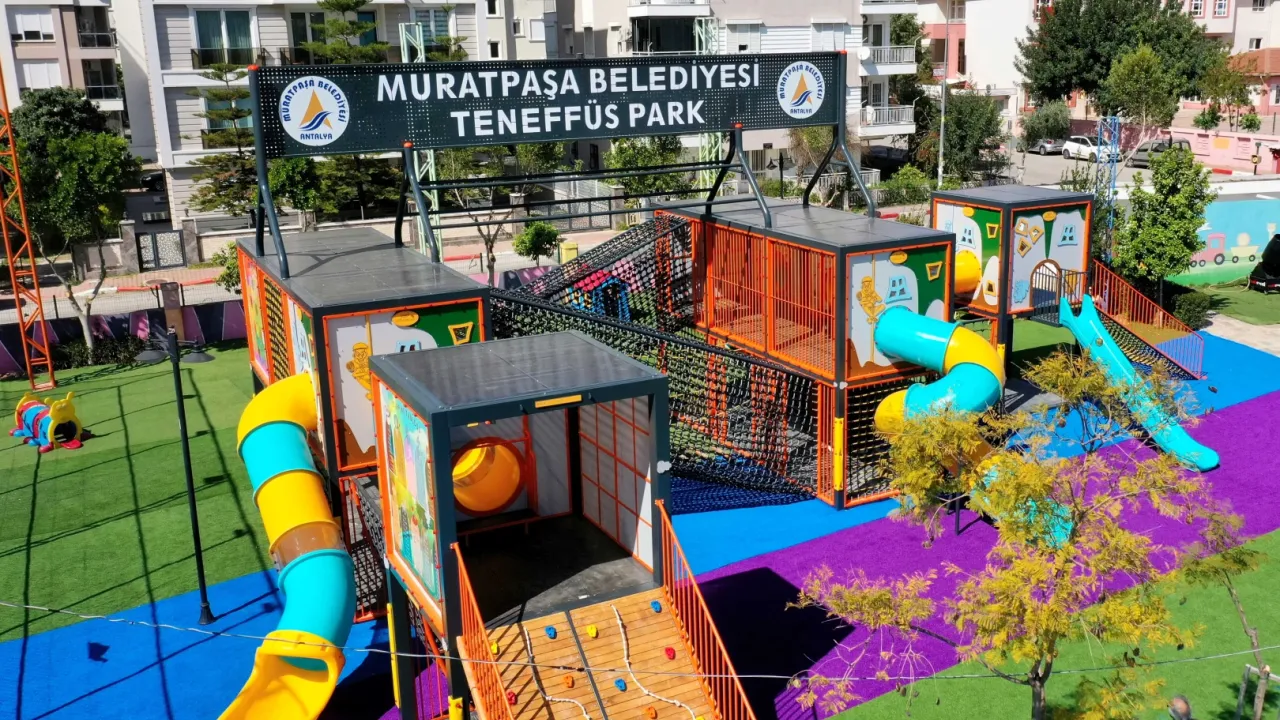 Antalya’da Muratpaşa Belediyesi’nin açık hava çocuk oyun dünyası Teneffüs Park’a yeni bir oyun parkuru kuruldu.ANTALYA (İGFA) - Antalya Muratpaşa Belediyesi’nin Çaybaşı Mahallesi’nde 2016 yılında 16 bin metrekarelik alana kurduğu Teneffüs Park’a “Kaydırak Kulesi” isimli bir oyun parkuru kuruldu. Kulede çocukların kaydıraklara ulaşabilmesi için tırmanış alanlarından geçmesi gerekiyor. 8 yaş üzeri çocuklara serbest kullanım alanı sağlayan bu yeni oyun alanı, 8 yaşından küçük çocuklar için ise ebeveyn gözetiminde kullanılabilecek.