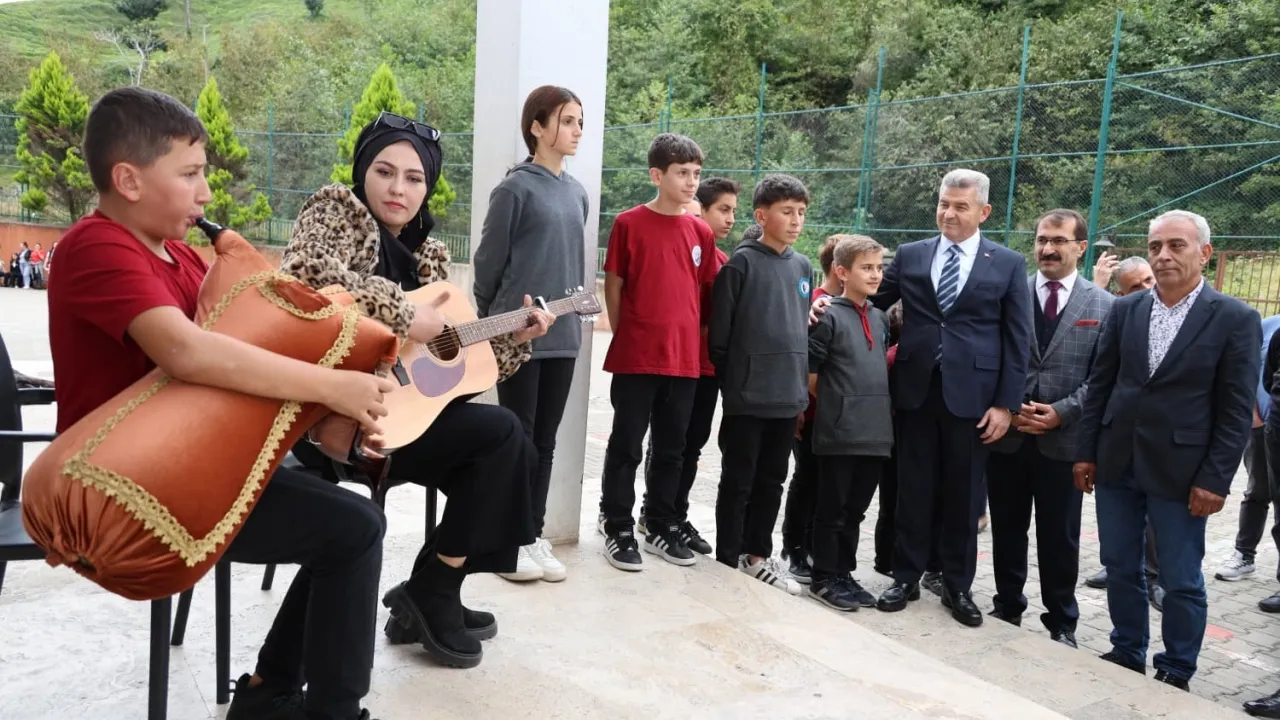 Artvin Valisi Turan Ergün, Hopa'da ziyaret ettiği okulun girişinde öğrenciler tarafından tulum eşliğinde karşılandı.