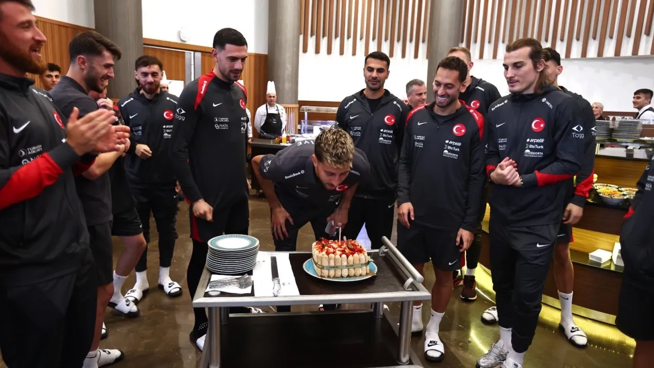 Türkiye Futbol Federasyonu'nun (TFF) sosyal medya paylaşımına göre, Atakan Karazor'un doğum günü kutlaması, Gürcistan maçı hazırlıklarının devam ettiği Riva'daki kampta gerçekleşti.