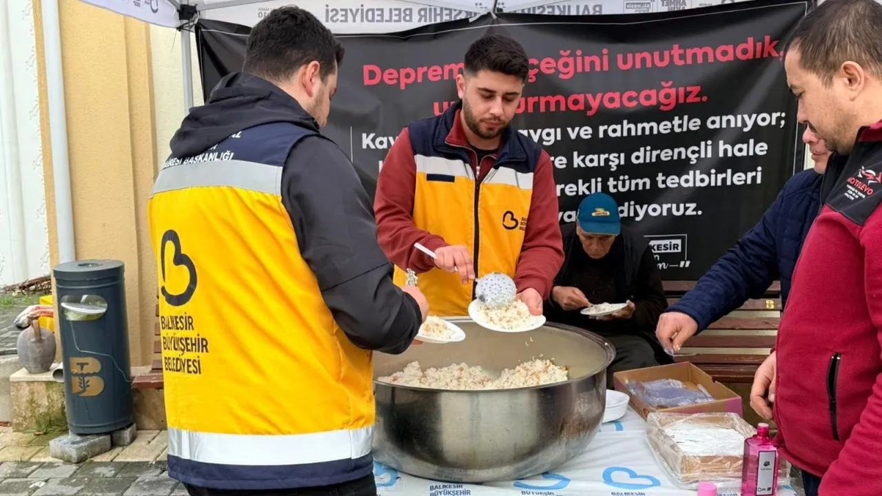 Balıkesir Büyükşehir Belediyesi, 6 Şubat 2023'te meydana gelen Kahramanmaraş merkezli toplam 11 ili etkileyen depremlerin 3'üncü yıl dönümünde depremde hayatını kaybeden vatandaşların anısına 20 ilçedeki merkez camilerde cuma çıkışı pilav hayrı gerçekleştirdi.
