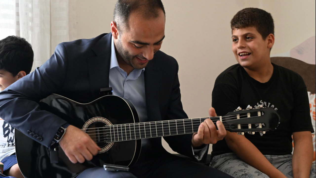 Gaziosmanpaşa'da, geçtiğimiz günlerde sokak ortasında darbedilen 13 yaşındaki özel gereksinimli Efe’ye, Gaziosmanpaşa Belediyesi Başkan Vekili Eray Karadeniz, anlamlı bir sürpriz yaptı. Küçük çocuğa hayalini kurduğu gitarı hediye eden Karadeniz, Efe ile birlikte gitar çalma sözü de verdi.