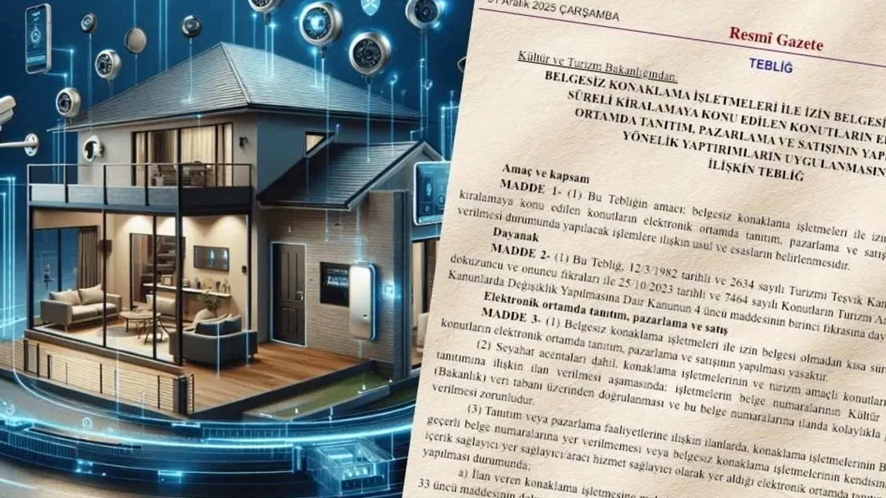 Kültür ve Turizm Bakanlığı'nın Resmi Gazete'de yayımlanan tebliğiyle, belgesiz konaklama işletmeleri ile izin belgesi olmayan kısa süreli kiralamaların internet üzerinden tanıtım ve satışına yaptırım getirildi.