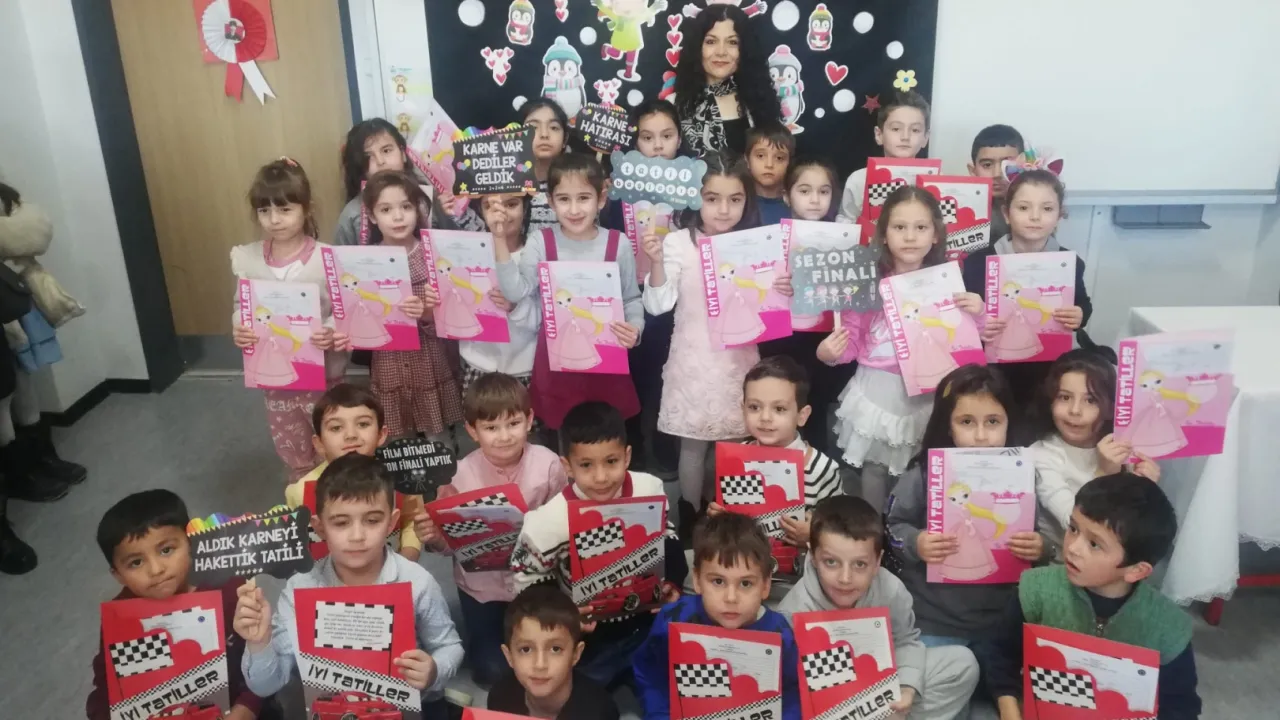 Her yıl yarıyıl ve dönem sonlarında karne telaşı yaşan eğitim dünyası, Milli Eğitim Bakanlığı’nın Maarif Modeli kapsamında bu yıl ilk kez ilkokul birinci sınıflarda ‘gelişim raporu’ heyecanı yaşadı. Mudanya'da Şehit Tunahan Yavuz İlkokulu 1-B sınıfı öğrencileri ise gelişim raporlarını özel konseptle aldı.BURSA (İGFA) – Türkiye genelinde ilkokul birinci sınıf öğrencileri bu yıl ilk kez karne yerine ‘gelişim raporu’ aldı.