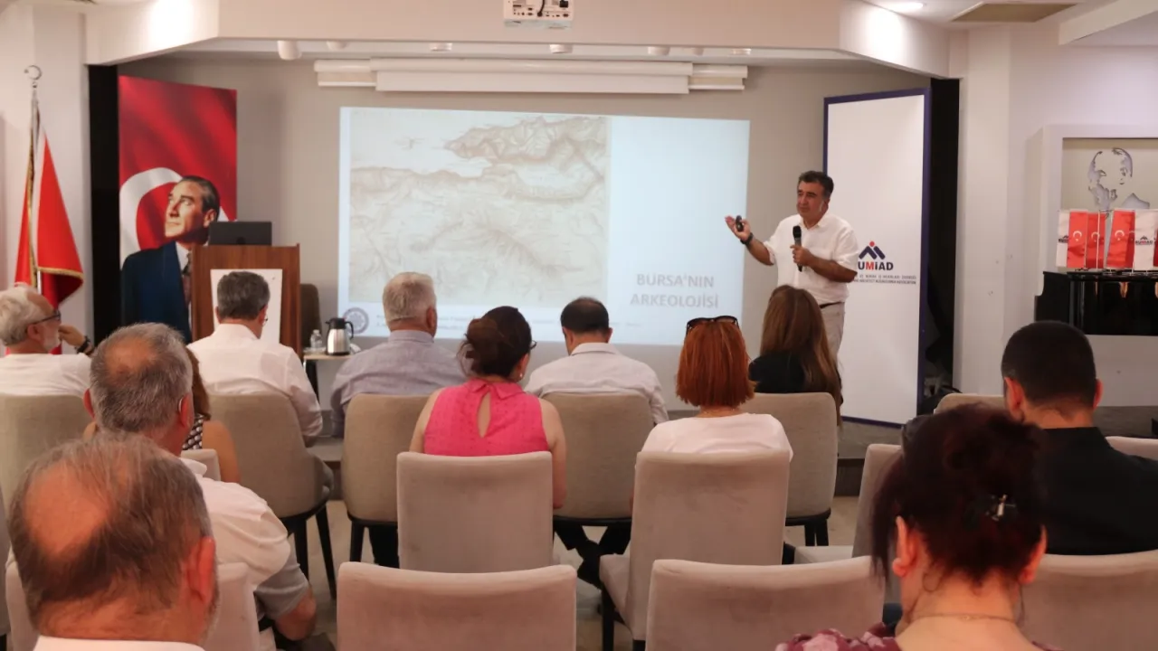 Bursa Mühendis ve Mimar İş İnsanları Derneği (BUMİAD), ‘İznik Bazilikası ve Bursa’nın Tarihi’ konulu toplantıda, Bursa Uludağ Üniversitesi Fen-Edebiyat Fakültesi, Arkeoloji Bölümü Başkanı Prof. Dr. Mustafa Şahin’i konuşmacı olarak ağırladı.BURSA (İGFA) - Bursa İznik’te sürdürülen kazılar ve bölgenin tarihsel öneminin ele alındığı toplantının açılış konuşmasını yapan BUMİAD Başkanı Mustafa Gümüş, “İznik kazıları sayesinde tarihe olan ilgi artıyor” diyerek, Prof. Dr. Şahin’in yıllardır süren çalışmalarından dolayı kendisine teşekkürlerini sundu.