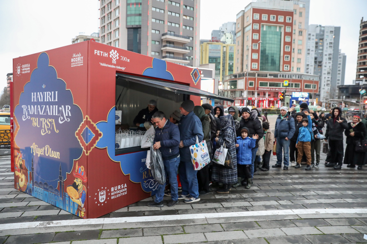 Bursa Büyükşehir Belediyesi, Emir Sultan, İnegöl İshakpaşa BURULAŞ Otoparkı, Fomara Fevzi Çakmak Katlı Otoparkı ve Değirmenönü Mahallesi'nde kurduğu sabit noktalarda da her gün binlerce vatandaşa iftar veriyor. İftara yetişemeyen vatandaşlar için ise yoğunluğun yaşandığı 14 ayrı noktada her gün iftariyelik dağıtılıyor. Kentin 1060 mahallesinde de Ramazan ayı boyunca en az bir kere vatandaşlara tatlı ikramında bulunuluyor.