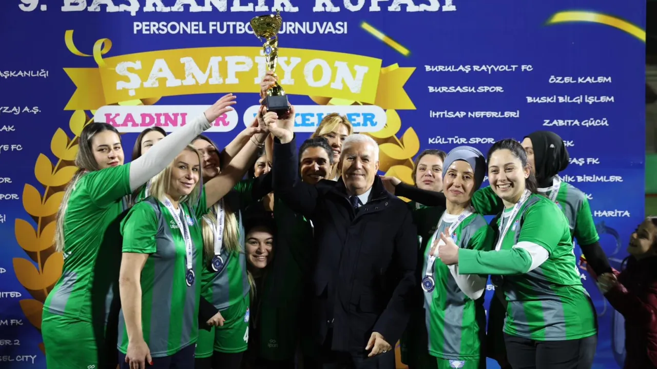 Bursa Büyükşehir Belediyesi'nin kurum içi iletişimi güçlendirmek adına düzenlediği '9. Başkanlık Kupası Personel Futbol Turnuvası', kıyasıya mücadelelerin ardından sona erdi. Toplam 52 takımın katıldığı turnuvada final maçlarının sonunda kupanın sahibi kadınlarda 'Ateşin Kızları', erkeklerde ise 'BUSKİ Abone İşleri Dairesi Başkanlığı' oldu.