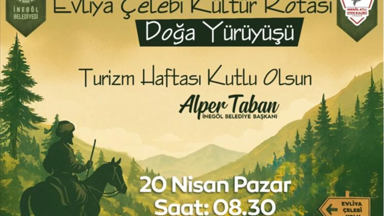 Turizm Haftasının ikinci etkinliği ise 20 Nisan Pazar günü yapılacak. İnegöl Belediyesi organizasyonuyla Evliya Çelebi Yolu üzerinde 10 kilometrelik kolay parkurda doğa yürüyüşü yapılacak. Pazar günü sabah 08.30’da Kültürpark içi belediye spor salonu önünden başlayacak programda, yürüyüş için vatandaşlar otobüslerle Yukarıballık bölgesine taşınacak. Yukarıballık bölgesinde başlayacak yürüyüş Hamamlı ve Ortaköy istikametinden Alibeyköy’de bulunan Şekibe İnsel Doğal Yaşam Çiftliğine kadar devam edecek. Yürüyüş burada son bulacak. Şekibe İnsel Doğal Yaşam Çiftliğinde de çeşitli etkinlikler gerçekleştirilecek. Burada aynı zamanda katılımcılara İnegöl Köftesi ile İnegöl Gazozu ikramları yapılacak.