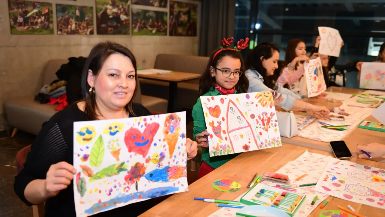 BURSA (İGFA) - Sağlıklı ve sanatla iç içe büyüyen nesiller yetiştirme hedefi doğrultusunda kültürel çalışmalarına aralıksız devam eden Osmangazi Belediyesi, Panorama 1326 Bursa Fetih Müzesi'nde renkli bir atölye düzenledi. Anne Çocuk Sanat Atölyesi'nde anneler, çocuklarıyla birlikte resim sanatını işledi. Hayal güçlerini renklerle buluşturarak resim kağıdına yansıtan katılımcılar, eğitmenler eşliğinde ortaya koydukları özgün çalışmalarıyla etkinliğin sanatsal atmosferini zenginleştirdi.