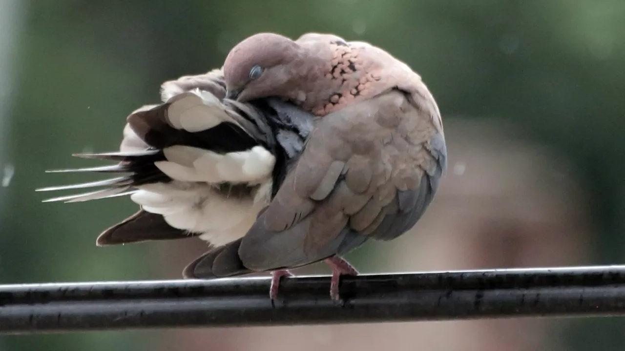 Elektrik tellerine konan gugukçuklar, serin havayla birlikte gelen yağmurun keyfini çıkardı.