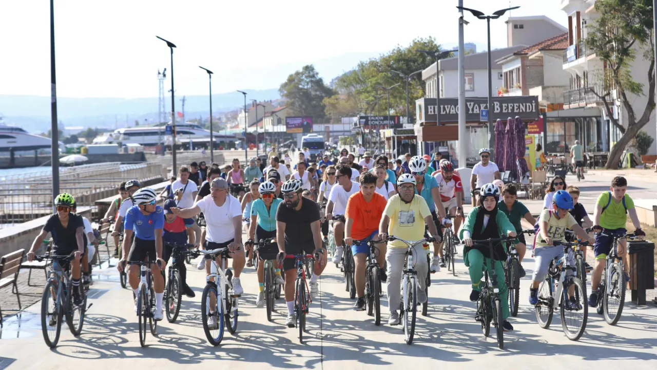 Mütareke'den Güzelyalı İDO İskelesi’ne varan bisikletçiler, mola sonrasında yeniden Mütareke Meydanı’na dönüş yaptı.