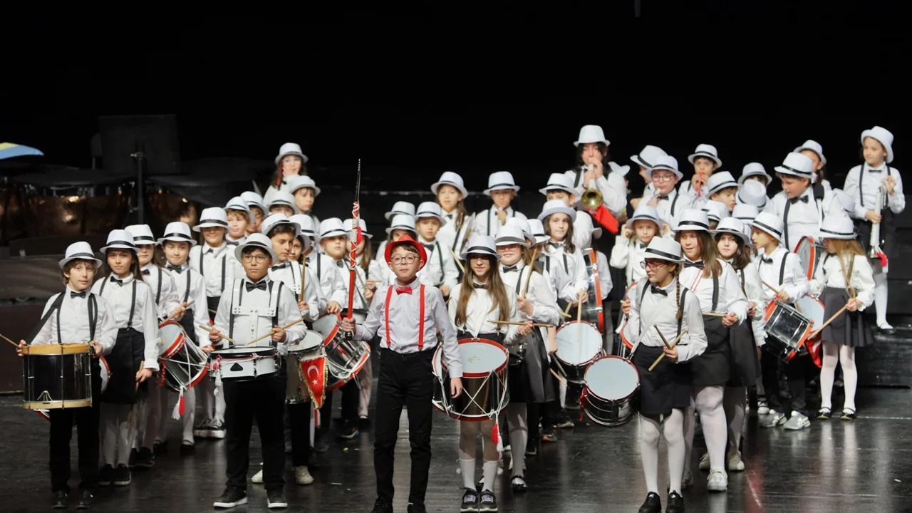 Türk bayraklarıyla sahneye çıkan minikler, izleyicilerden yoğun alkış aldı. Farklı yaş gruplarından çocukların oluşturduğu orkestra ve koro, repertuvarlarında yer alan eserleri büyük bir uyum ve başarıyla seslendirdi. Salonu dolduran aileler ve sanatseverler, çocukların performansına eşlik ederek bayram sevincini paylaştı. Çocukların sahnedeki enerjisi ve birlikteliği, izleyenlere hem duygusal hem de gurur dolu anlar yaşattı.