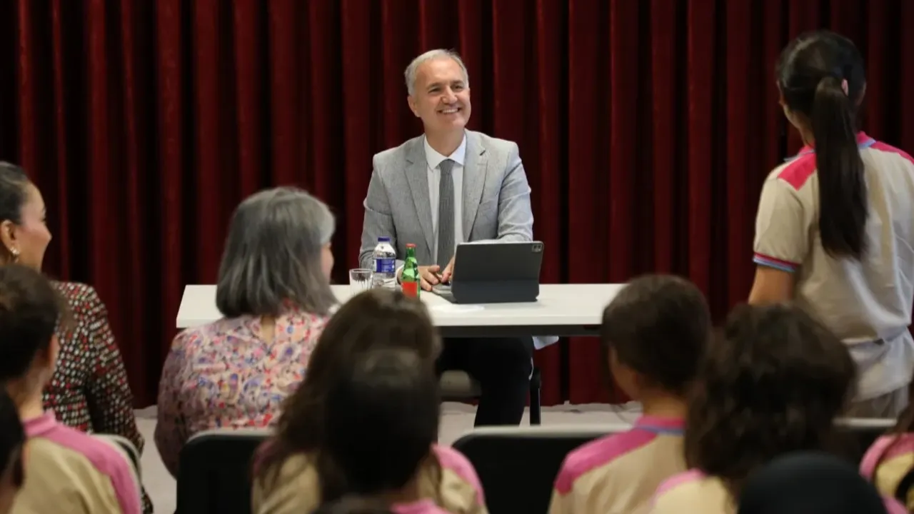 Sınıf ziyaretleri sonrası Başkan Taban öğrencilerle okulun çok amaçlı salonunda buluştu. Programda öğrencilerle birlikte okul idarecileri ve öğretmenler de yer aldı.