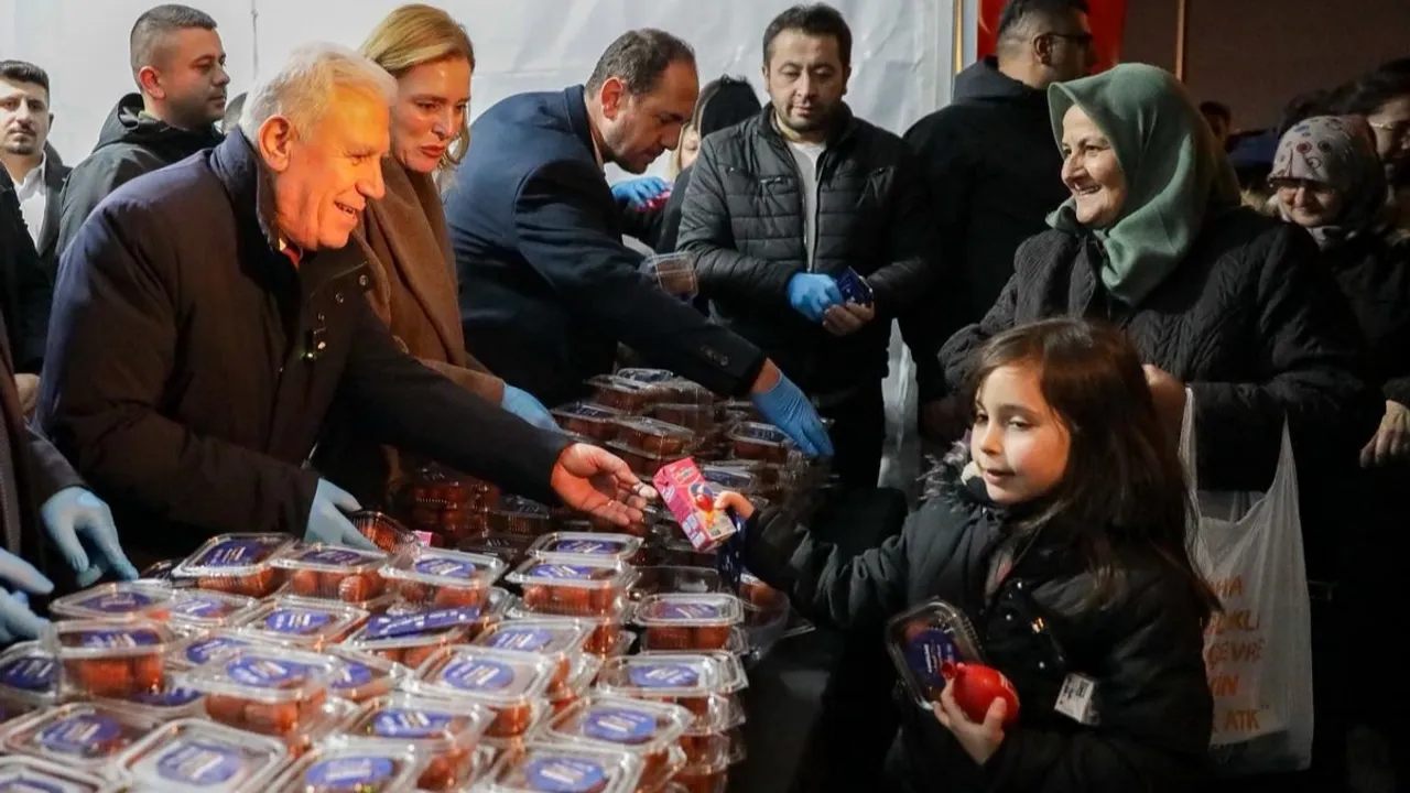 Bursa Büyükşehir Belediyesi, Miraç Kandili'nin manevi atmosferini kent genelinde yaşatmak amacıyla 17 ilçede vatandaşlara tatlı ikramında bulundu.