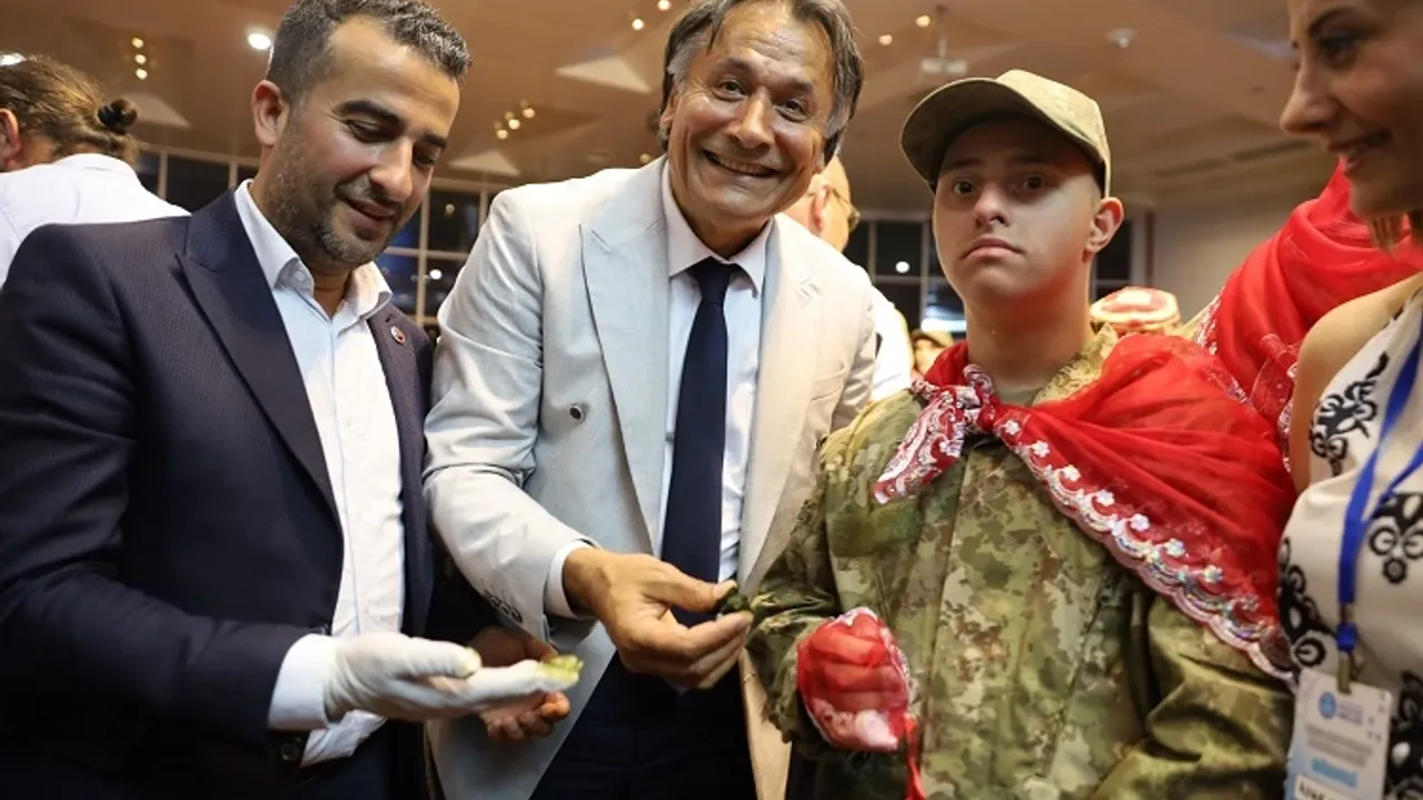 Bursa Kent Konseyi Engelliler Meclisi, vatani görevini zihinsel veya fiziksel engelleri sebebiyle yerine getiremeyen bireyler için geleneksel ‘Askerlik Kına Eğlencesi’ düzenledi. Dev Türk bayrağı eşliğinde salona gelen asker adayları, hem üniforma giymenin heyecanını yaşadı hem de ailelerine duygu dolu anlar yaşattı.BURSA (İGFA) - Zihinsel ya da fiziksel engelleri nedeniyle yaşıtları gibi askere gidemeyen bireylerin vatani görevlerini yerine getirebilmeleri için başlatılan 1 günlük askerlik uygulamasından yararlanan yaklaşık 80 kişi, Bursa Kent Konseyi Engelliler Meclisi’nin organize ettiği kına gecesiyle askere uğurlandı. Atatürk Kültür Merkezi Merinos Yerleşkesi’ndeki geceye, Bursa Büyükşehir Belediyesi Başkanvekilleri Mehmet Aydın Saldız ve Sinan Nergiz, Bursa Garnizon Komutanı Tank Albay Refai Eciroğulları, Bursa Kent Konseyi Başkanı Prof. Dr. Ertuğrul Aksoy, Engelliler Meclisi Başkanı Samet Şahin, askeri erkan ve engelli bireylerin aileleri katıldı.