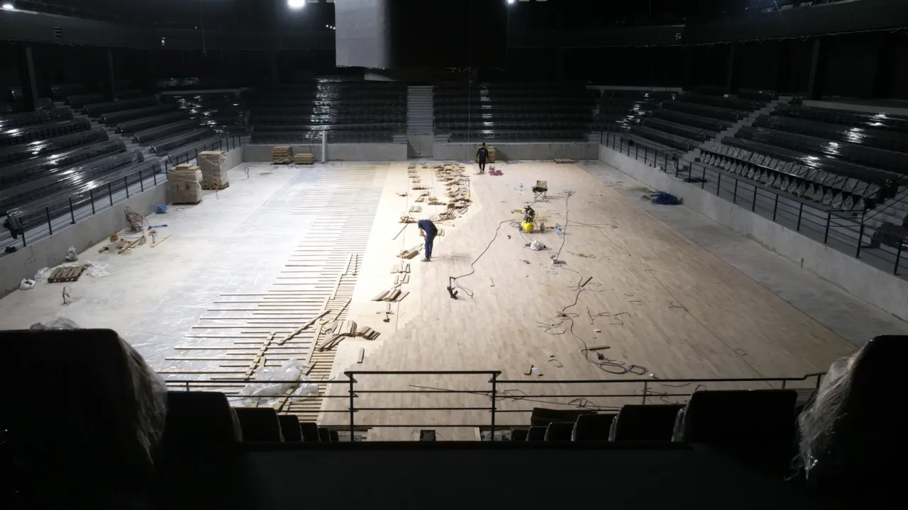 Çayırova Belediye Başkanı Bünyamin Çiftçi'nin vizyon projeleri arasında yer alan, tamamlandığında ilçenin ikinci spor salonu olacak ve uluslararası basketbol müsabakası oynamaya uygun salonuyla, sadece bölgede değil ülke genelinde fark yaratacak Kapalı Spor Salonu ve Sporcu Fabrikası'nda koltuk montajının tamamlanmasının ardından, parke montajına geçildi.