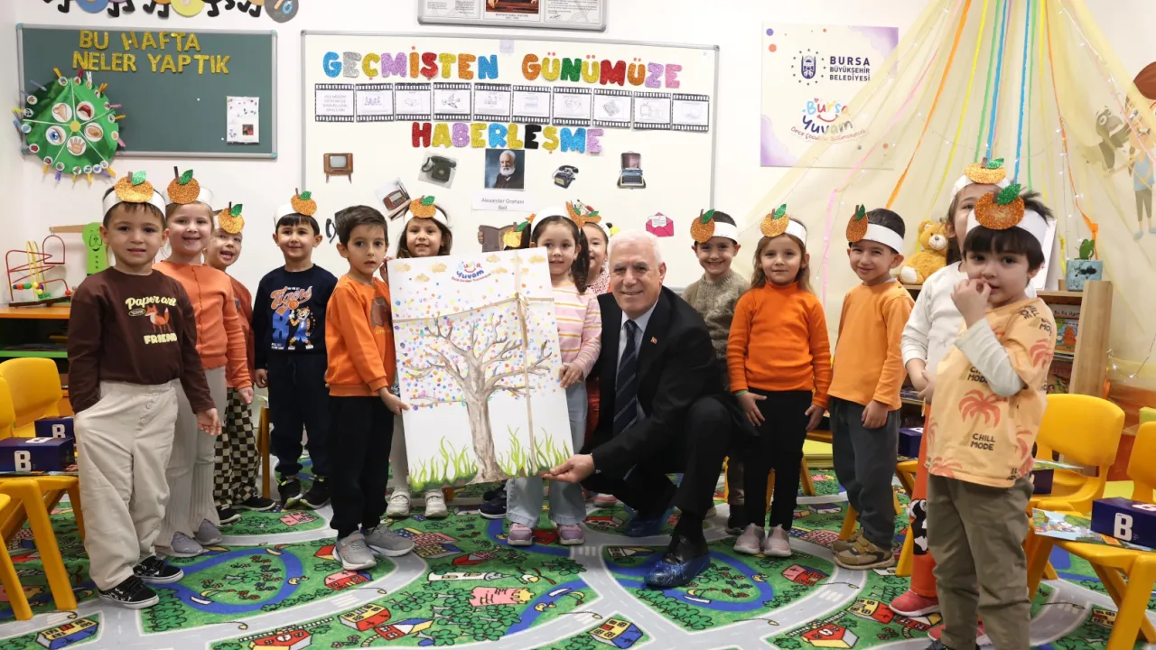 Bir yandan Bursa'yı dirençli ve afetlere hazırlıklı hale getirmek için projeler üreten Bursa Büyükşehir Belediyesi bir yandan da toplumsal farkındalığı artıracak çalışmalarını sürdürüyor. Bu kapsamda Alacahırka ve Üçevler Bursa Yuvam Çocuk Etkinlik Merkezlerini ziyaret eden Bursa Büyükşehir Belediye Başkanı Mustafa Bozbey, öğrencilerle bir araya geldi. Çocuklara afet bilincini artırmaya yönelik hazırlanan boyama kitapları hediye eden Başkan Bozbey, minik öğrencilerle birlikte boyama da yaptı. Öğrencilere süt ve meyve de ikram eden Başkan Bozbey, afetler hakkında bilgiler verdi.