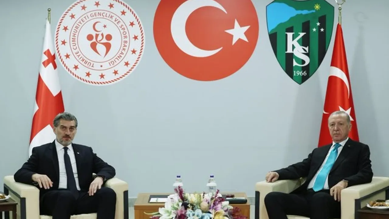 Erdoğan ve Kavelaşvili'nin buluşması, maçın coşkulu atmosferinde gerçekleşti.