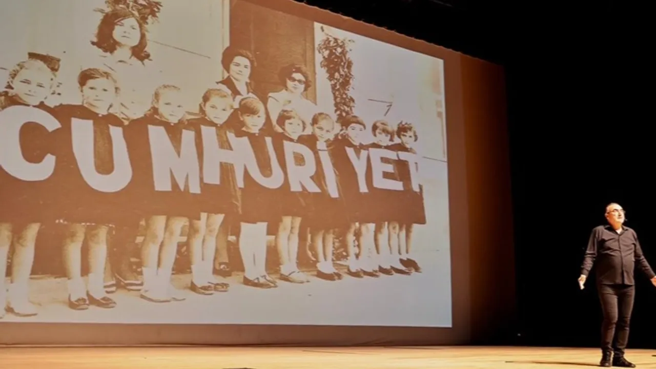 Tarihi olayları sanatsal bir anlatımla birleştiren Akın, kimi zaman seyircileri kahkahaya boğarken, kimi zaman da duygu dolu anlar yaşattı. 'Türkiye Cumhuriyeti'nin temeli kültürdür' diyen Sunay Akın, Atatürk'ün öncülüğünde kurulan Cumhuriyet'in bilimsel ve kültürel temellerini tanıttı.