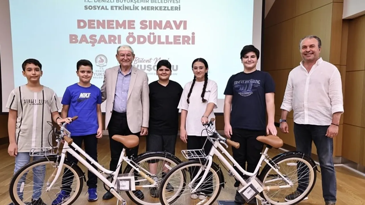 Denizli Büyükşehir Belediyesi, 2024–2025 eğitim öğretim yılı kapsamında düzenlenen deneme sınavlarında dereceye giren öğrencileri ödüllendirdi.DENİZLİ (İGFA) - Denizli'de eğitimde fırsat eşitliğini güçlendirmek ve öğrencilerin motivasyonunu artırmak amacıyla gerçekleştirilen uygulama kapsamında toplam 30 öğrenciye bisiklet, kulaklık ve kırtasiye çeki hediye edildi.