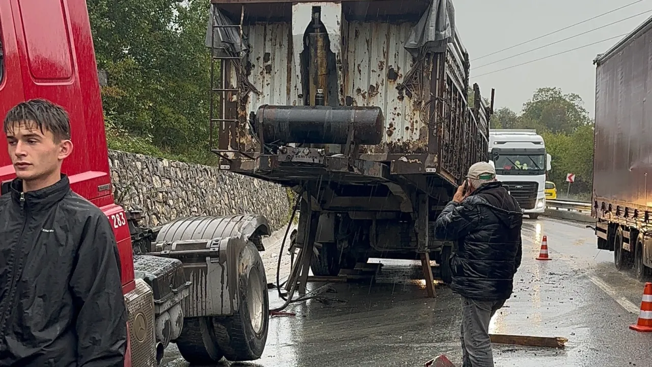 D-655 Düzce-Zonguldak bağlantı yolunun Şifalı Su mevkisinde meydana gelen kazada, 81 ACH 644 plakalı tır sürücüsünün direksiyon hâkimiyetini kaybetmesi sonucu bariyerlere çarptı.