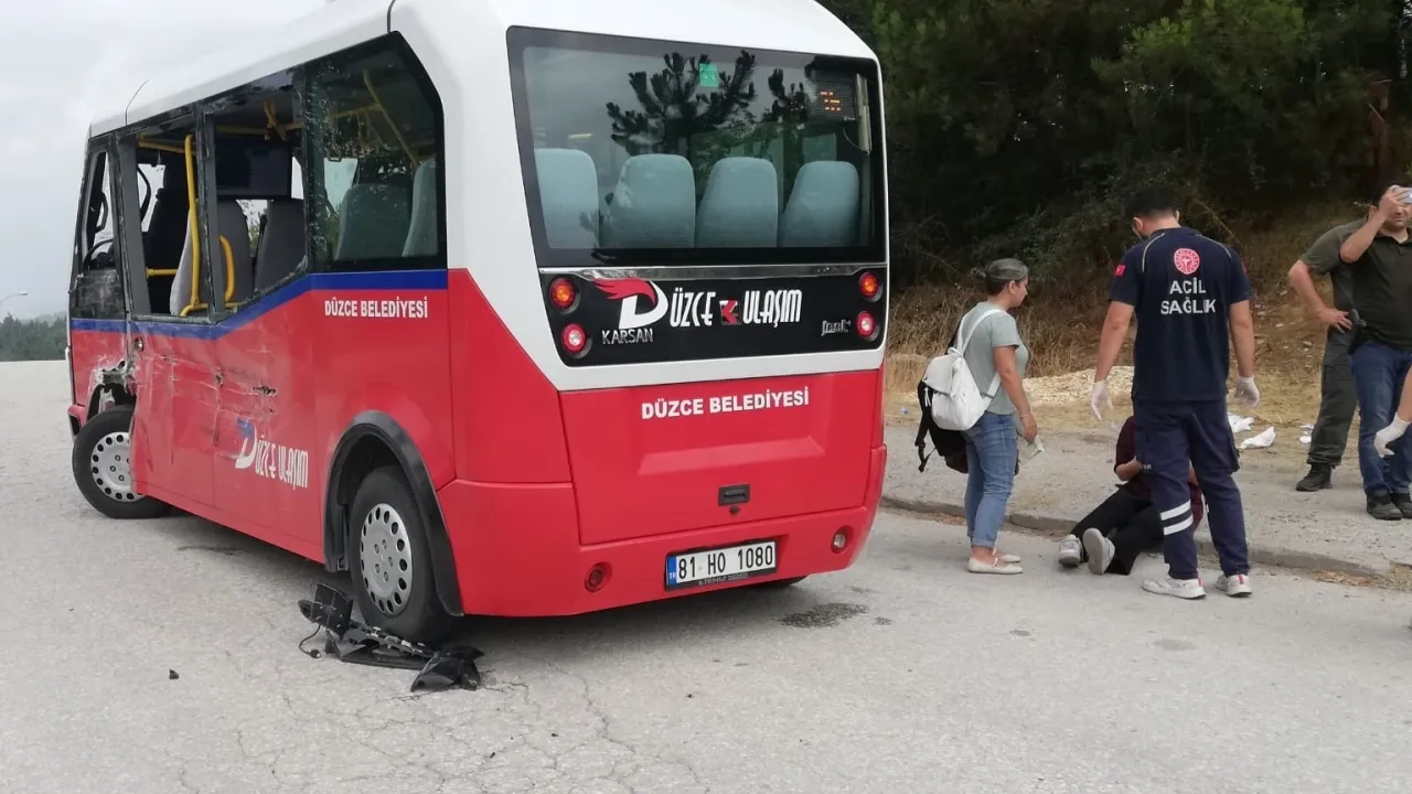 R.A. yönetimindeki 21 AAF 531 plakalı kamyon ile H.S. idaresindeki 81 HO 1080 plakalı Düzce Belediyesi’ne ait şehir içi yolcu minibüsü henüz bilinmeyen bir nedenle çarpıştı.