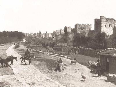 100 yıl önce İstanbul Surları: İstanbul Surları, İstanbul`un etrafını çeviren surlar tarihte 7. yy.dan başlayarak inşa edilmiş, yıkılmalar ve yeniden yapmalarla dört defa elden geçmiştir. Son yapımı MS 408`den sonradır.