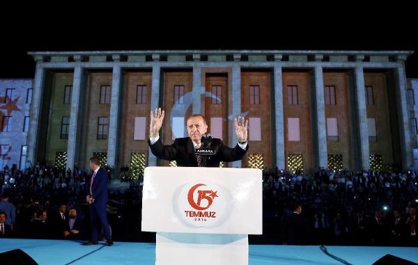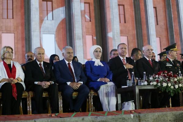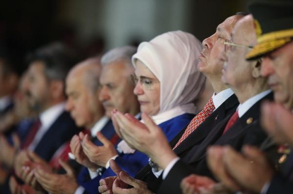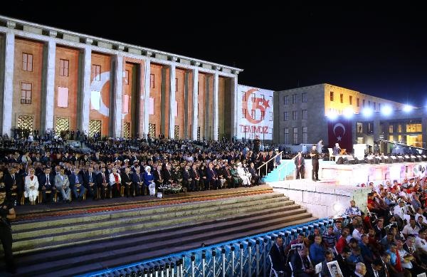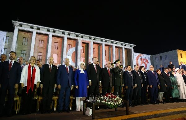 15 Temmuz darbe girişiminde bombalanan Meclis'te şehitleri anma törenine on binler katıldı...