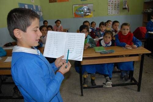 HAKKARİ'NİN DURANKAYA BELDESİNDEKİ PINARBAŞI İLKÖĞRETİM OKULU'NDA YAŞANAN ÖĞRETMEN SIKINTISI NEDENİYLE ÖĞRENCİLERİN ARKADAŞLARINA DERS VERDİKLERİ BELİRTİLDİ.