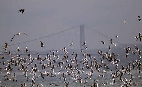BOĞAZ KÖPRÜSÜ, GÖKYÜZÜNDE ADETA DANS EDEN MARTILARLA BİRLİKTE SEYRİNE DOYULMAZ BİR MANZARA MEYDANA GETİRDİ.
