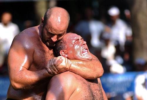 İSTANBUL'DA YAPILAN YAĞLI GÜREŞLER, KIRAN KIRANA MÜCADELELERE SAHNE OLDU. GÜREŞÇİLERİN BU REKABETİ İLGİNÇ KARELER OLUŞTURDU