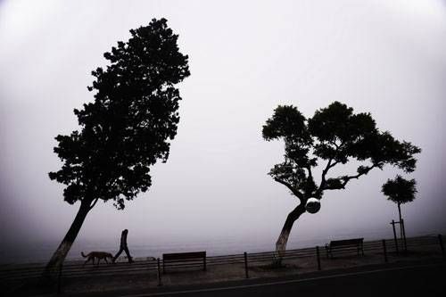İSTANBUL'DA SİS BOĞAZI KAPLADI. AĞAÇLAR VE SAHİLDE GEZİNTİYE ÇIKANLAR BEYAZ SİSE ZIT BİR ŞEKİLDE TABLOYU ANDIRAN BU MANZARAYI OLUŞTURDU.