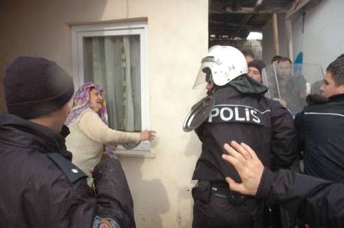SARIYER'DE, BİR GECEKONDUNUN YIKIMI SIRASINDA OLAYLAR ÇIKTI. BİR KADIN, POLİSE TABAK FIRLATTI.