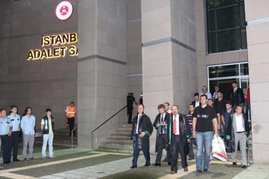 Emniyetteki işlemlerinin ardından Çağlayan'da bulunan İstanbul Adalet Sarayına getirilen 16 polisten 8'i savcılık sorgularının ardından gece 01.30 sıralarında serbest bırakılırken 8 polis de tutuklanma talebiyle mahkemeye sevk edildi. Serbest kalan polisler adliye çıkışında yakınları tarafından alkışlarla karşılandı. Polisler daha sonra basın mensuplarına açıklamalarda bulundu.