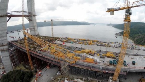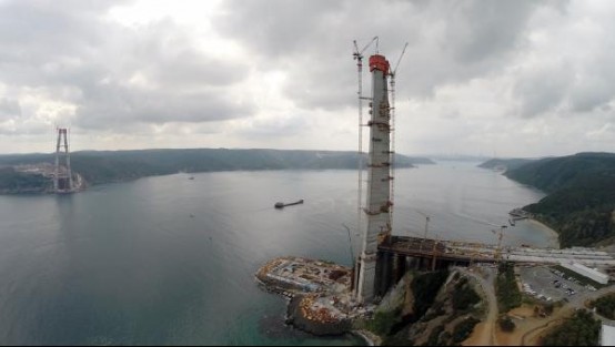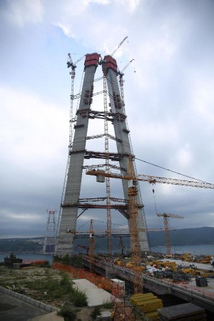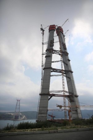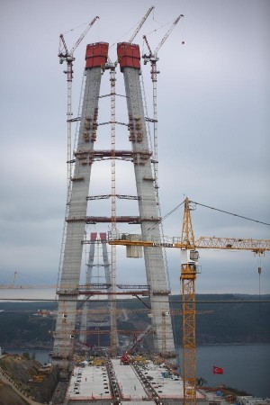 'Yavuz Sultan Selim' ismi verilecek olan 3. boğaz köprüsünün kule inşaatları hızla sürerken her geçen gün sona yaklaşılıyor. İnşaası bittiğinde denizden yüksekliği 329 metreyi aşacak olacak kuleler şu anda 285 metreyi geldi. Kulelerde 24 saat aralıksız çalışılırken, yüksekliğin artmasıyla birlikte aşırı rüzgârın zaman zaman çalışmaları aksattığı öğrenildi. 285 metre yükseklikte rüzgar hızının 55 kilometreyi aştığı durumlarda emniyet açısından kule vinçlerinin ve asansörlerin durdurulduğu belirtildi. Devasa köprü kuleleri ise artık kilometrelerce uzaktan görülebiliyor.