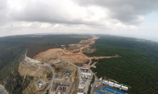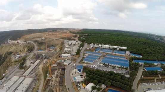 Havadan yapılan çekimlerde 6 bin 500 işçi ile 600 mühendisin görev yaptığı dev projenin şantiyesi ise adeta küçük bir kenti andırıyor. Haftanın 7 günü 24 saat aralıksız sürdürülen çalışmalarda yaklaşık bin dozer, greyder, kule vinç gibi büyük inşaat makinesi kullanıldığı belirtildi.
