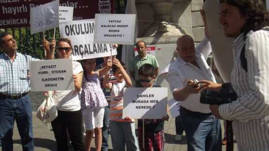 Projemi geri istiyorum diyen Beyazıt Ford Otosan İlköğretim Okulu’nun öğrenci ve velileri Galatasaray Lisesi önünde bir eylem yaptı. Eylemde basın açıklamasını Okul Aile Birliği Başkanı Ebru Üstüncan yaptı.