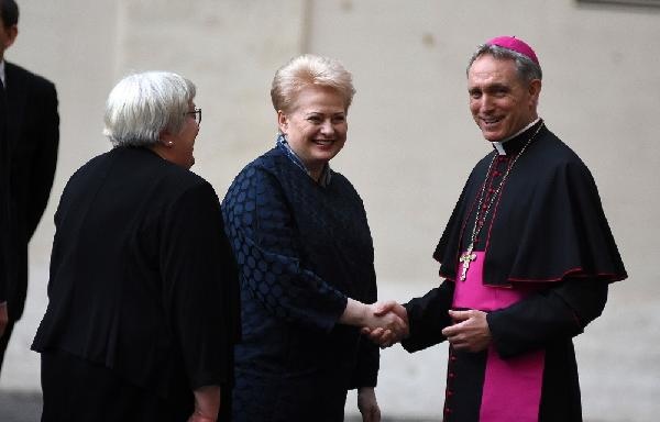 Papa Francesco'nun, Roma Antlasmasi'nin 60'inci yili munasebetiyle Roma'ya gelen AB liderlerini Vatikan'daki kabulune, Litvanya Cumhurbaskani Dalia Grybauskaitė (ortada) de katildi. FOTOGRAF: ESMA CAKIR - ROMA / DHA