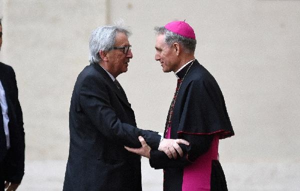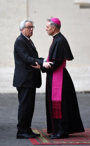 Papa Francesco'nun, Roma Antlasmasi'nin 60'inci yili munasebetiyle Roma'ya gelen AB liderlerini Vatikan'daki kabulune, Avrupa Komisyonu Baskani Jean-Claude Juncker de katildi.