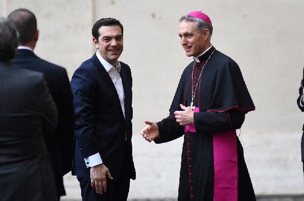 Papa Francesco'nun, Roma Antlasmasi'nin 60'inci yili munasebetiyle Roma'ya gelen AB liderlerini Vatikan'daki kabulune, Yunanistan Basbakani Aleksis Cipras da katildi.