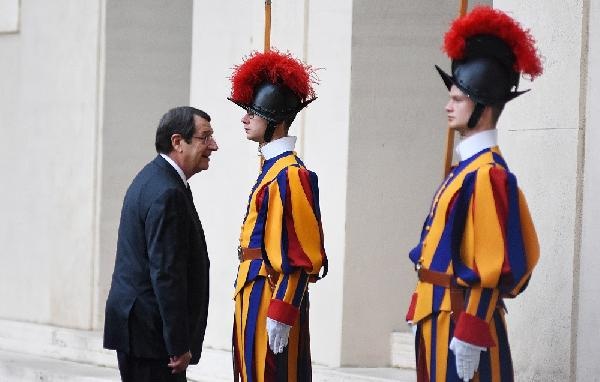 Papa Francesco'nun, Roma Antlasmasi'nin 60'inci yili munasebetiyle Roma'ya gelen AB liderlerini Vatikan'daki kabulune, Guney Kibris Cumhuriyeti Baskani Nikos Anastasiadis de katildi. FOTOGRAF: ESMA CAKIR - ROMA / DHA