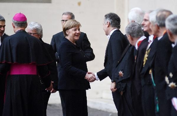 Papa Francesco'nun, Roma Antlasmasi'nin 60'inci yili munasebetiyle Roma'ya gelen AB liderlerini Vatikan'daki kabulune, Almanya Sansolyesi Angela Merkel de katildi. FOTOGRAF: ESMA CAKIR - ROMA / DHA