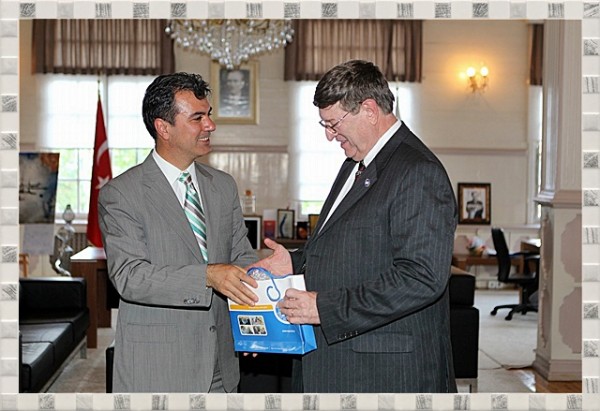 Kültürlerarası diyalogun önemine değinen Başkan İsmail Kavuncu, konuklara Eyüp Sultan figürlü tabak hediye etti.