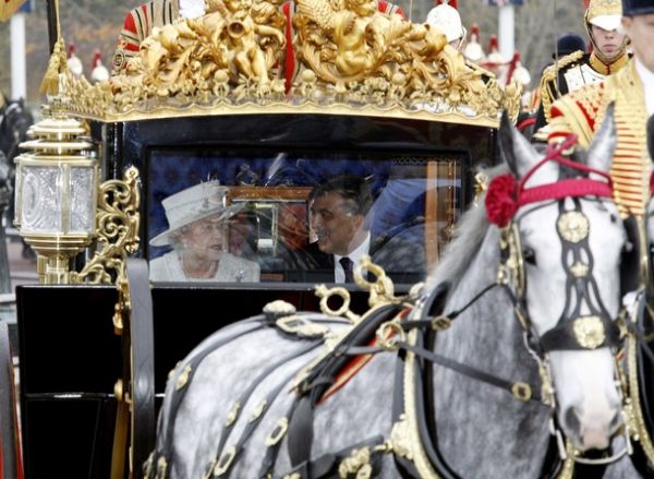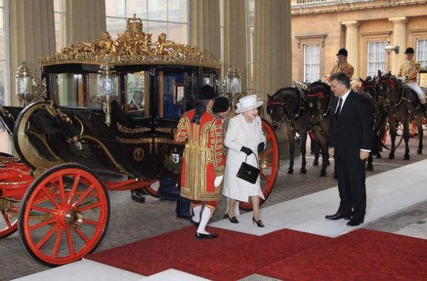 Cumhurbaşkanı Abdullah Gül ve eşi Hayrunnisa Gül, Buckingham Sarayı Suvari Birliği tören alanında gerçekleştirilen görkemli bir törenle Kraliçe 2. Elizabeth ve eşi Edinburgh Dükü tarafından karşılandı.