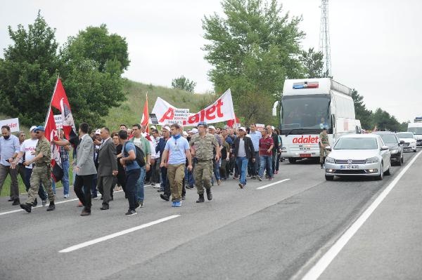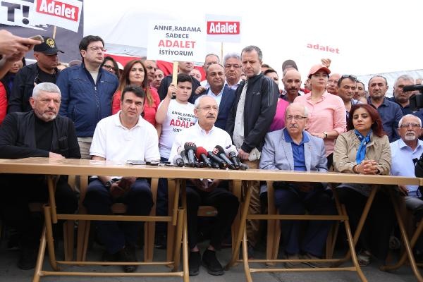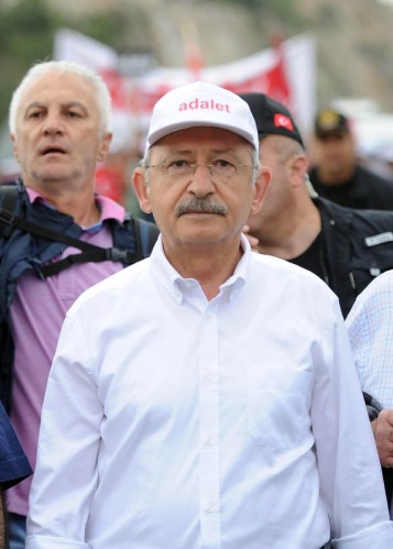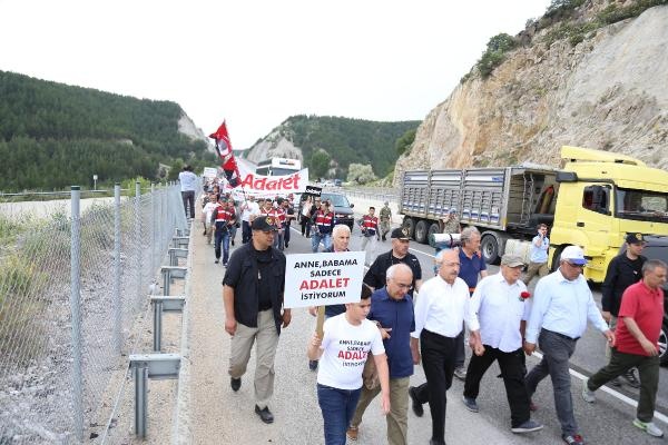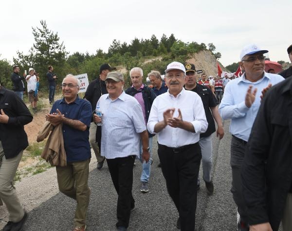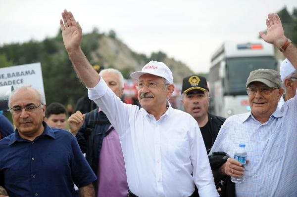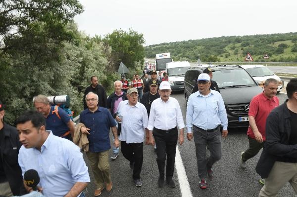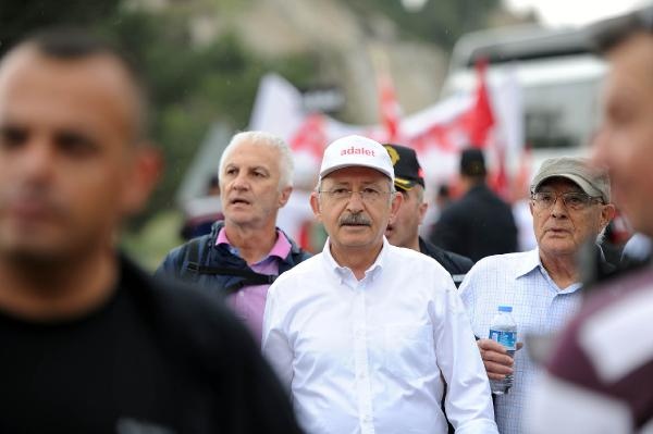 CHP lideri Kılıçdaroğlu, yürüyüşe devam etmek için indiği sırada toprak zeminde ayağı kayarak düştü. Kılıçdaroğlu daha sonra yürüyüşe devam etti.