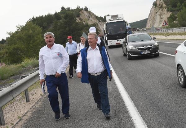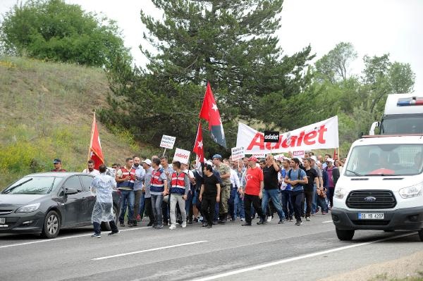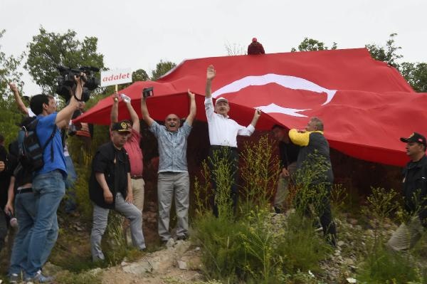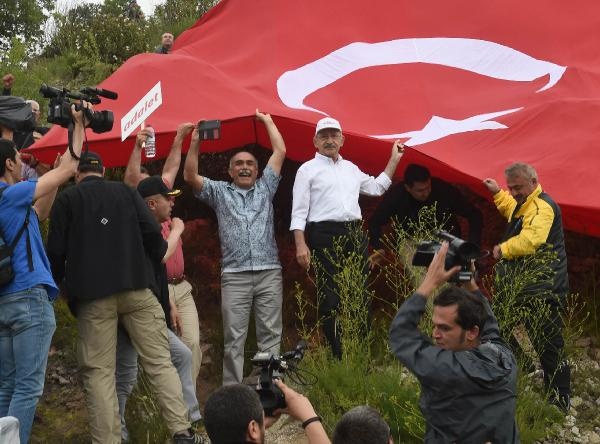 Kurtboğazı Barajı çıkışında yol kenarında yürüyüşe destek veren vatandaşlar büyük Türk Bayrağı açtı. Kılıçdaroğlu, bayrağın bulunduğu alana çıkarak vatandaşlarla selamlaştı.
