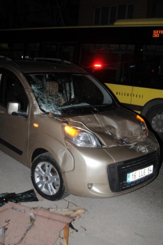 Yıldırım İlçesi Davutdede Mahallesi Kurtuluş Caddesi'nde hareket halindeki araçların üzerine çatı parçalarının düşmesi sonucu 3 araç zarar gördü. Paniğe kapılan sürücülerden Enver Yıl, "Yolda giderken birden arabanın sağına doğru bir şey düştü. Sağ koltukta annem oturuyordu. Çok şükür yara almadan kurtulduk. Cana Geleceğine mala gelsin" dedi.